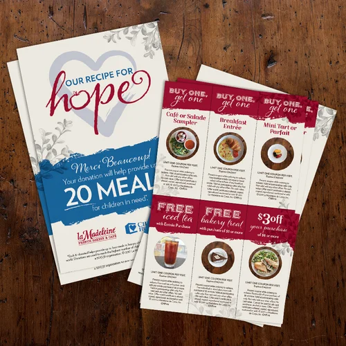 Depending on how much the Guest donated, they received this coupon card as a Merci from la Madeleine!